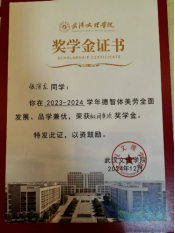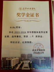 在学业上,张演龙始终保持严谨务实的态度,连续两个学年成绩名列前茅:2022-2023学年斩获一等奖学金、优秀学生干部标兵奖学金、创新创业奖学金及精神文明奖学金;2023-2024学年蝉联和润单项奖学金、二等奖学金、优秀学生干部奖学金等多项荣誉,用实力践行“品学兼优”的准则。