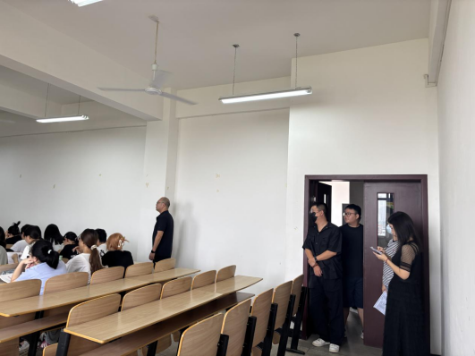 2025年9月1日,新学年开学首日,为全面掌握教学运行态势,切实维护教学秩序,永利集团304启动新学期教学检查专项工作。永利集团304党总支书记朱启贵、综合办公室主任余芬、分团委书记林雪及众辅导员深入各教学楼,对开学第一天教师教学、学生出勤、课堂秩序等情况进行全面细致的巡查。