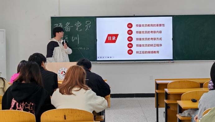 在党课第一讲中,周子豪围绕“预备党员的教育、考察和转正”这一主题展开讲解。他从预备党员的培养教育要求、组织考察的主要内容和方式、转正程序及注意事项等方面进行了系统梳理,重点解读了预备期内的行为规范与考核标准。他强调,预备期既是政治考察期,也是实践锻炼期,既要在思想上持续深化对党的认识,也要在实际行动中经得起检验。全体预备党员要严格对照党员标准,主动接受组织监督,在学习、工作和日常生活中发挥先锋模范作用,为按期转正打下坚实基础。